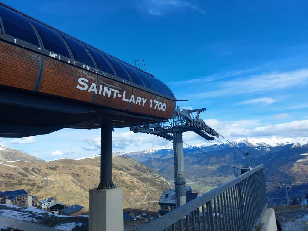 We nemen de téléphérique in Saint-Lary en genieten van het sneeuwlandschap op 1669 meter hoogte.